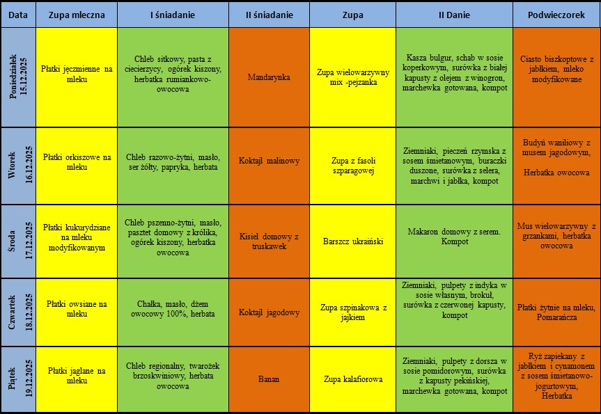 Dla dzieci wymagających diet eliminacyjnych jadłospis jest odpowiednio modyfikowany.