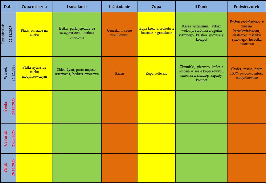 W przypadku wyświetlania nieaktualnych jadłospisów proszę odświeżyć stronę przeglądarki klawiszem F5